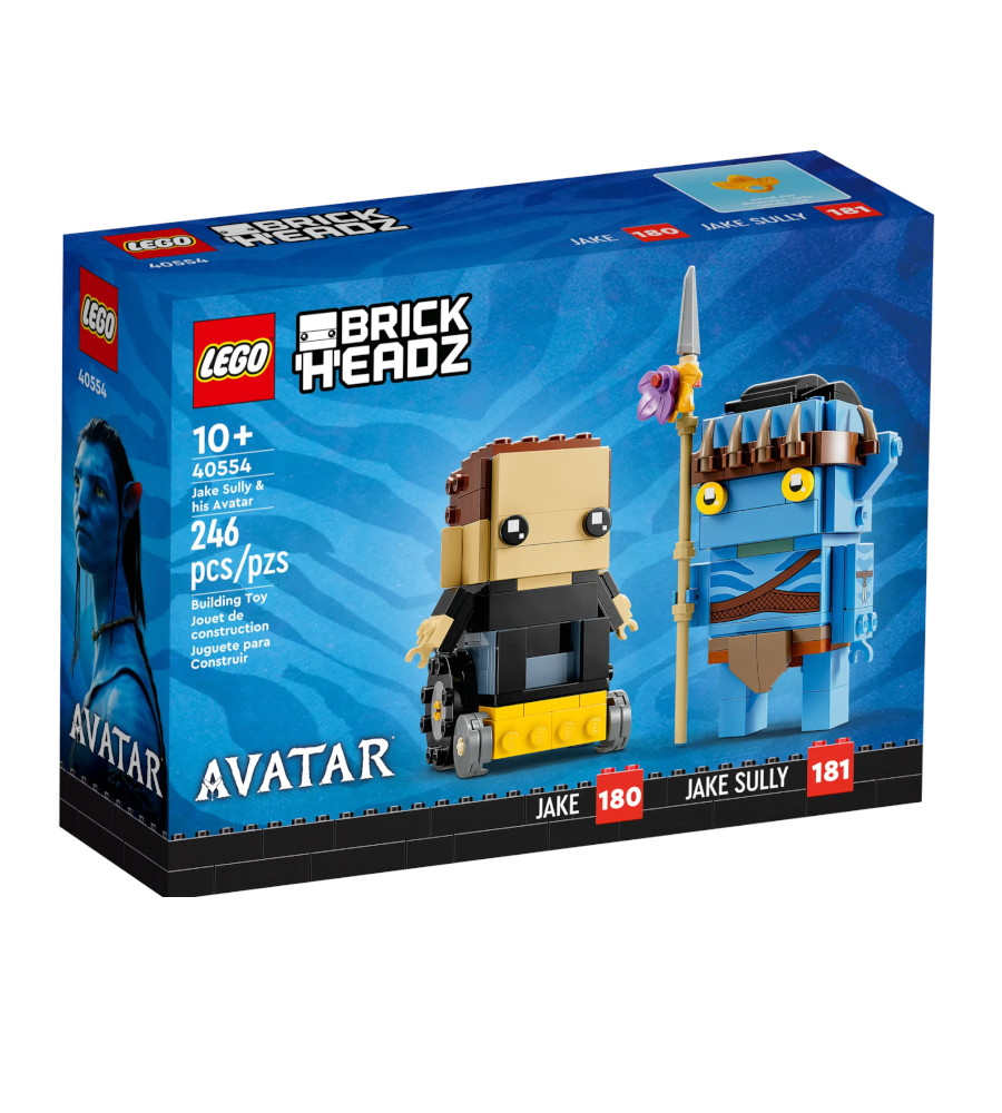 Fans of LEGO® BrickHeadz™ and Avatar movie enthusiasts will love this Jake Sully & his Avatar (40554) set, depicting Jake in his human form, with an attachable wheelchair, and as an Avatar with his Na’vi spear.