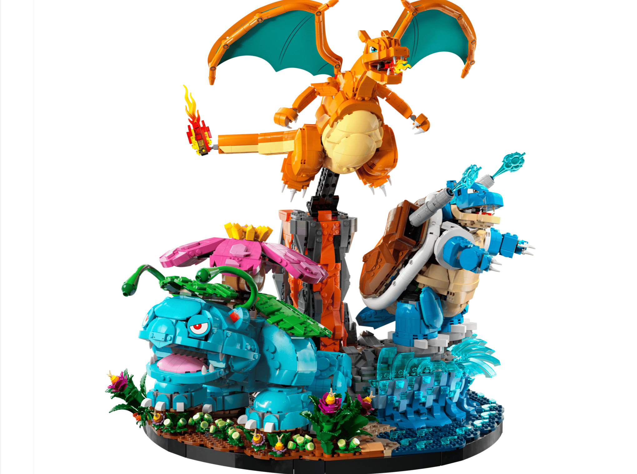 DIMENSIONS – This 6,838-piece collectible Pokémon building set includes Venusaur, Charizard and Blastoise figures that stand over 9 in. (23 cm), 8 in. (20 cm) and 7 in. (18 cm) tall respectively