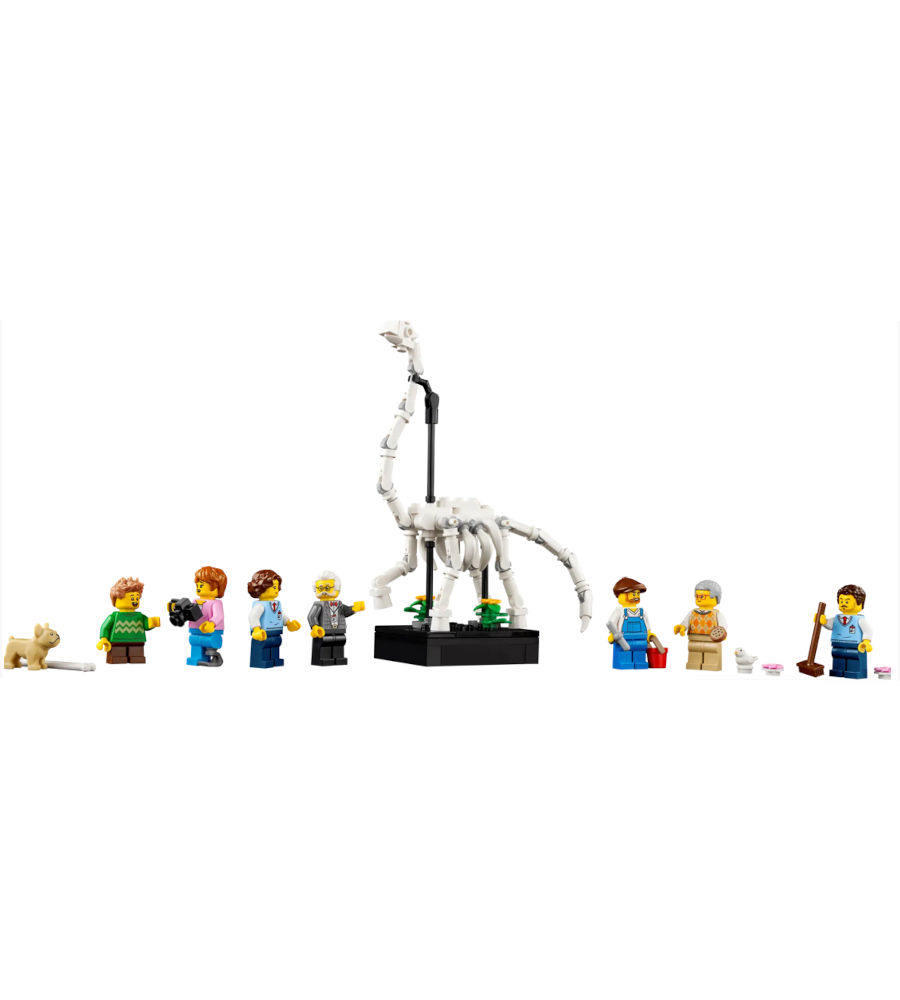 Cosa c’è nella scatola: tutto ciò di cui hai bisogno per costruire un museo LEGO® Icons con una serie di reperti scientifici e di storia naturale in mattoncini, oltre a 7 minifigure