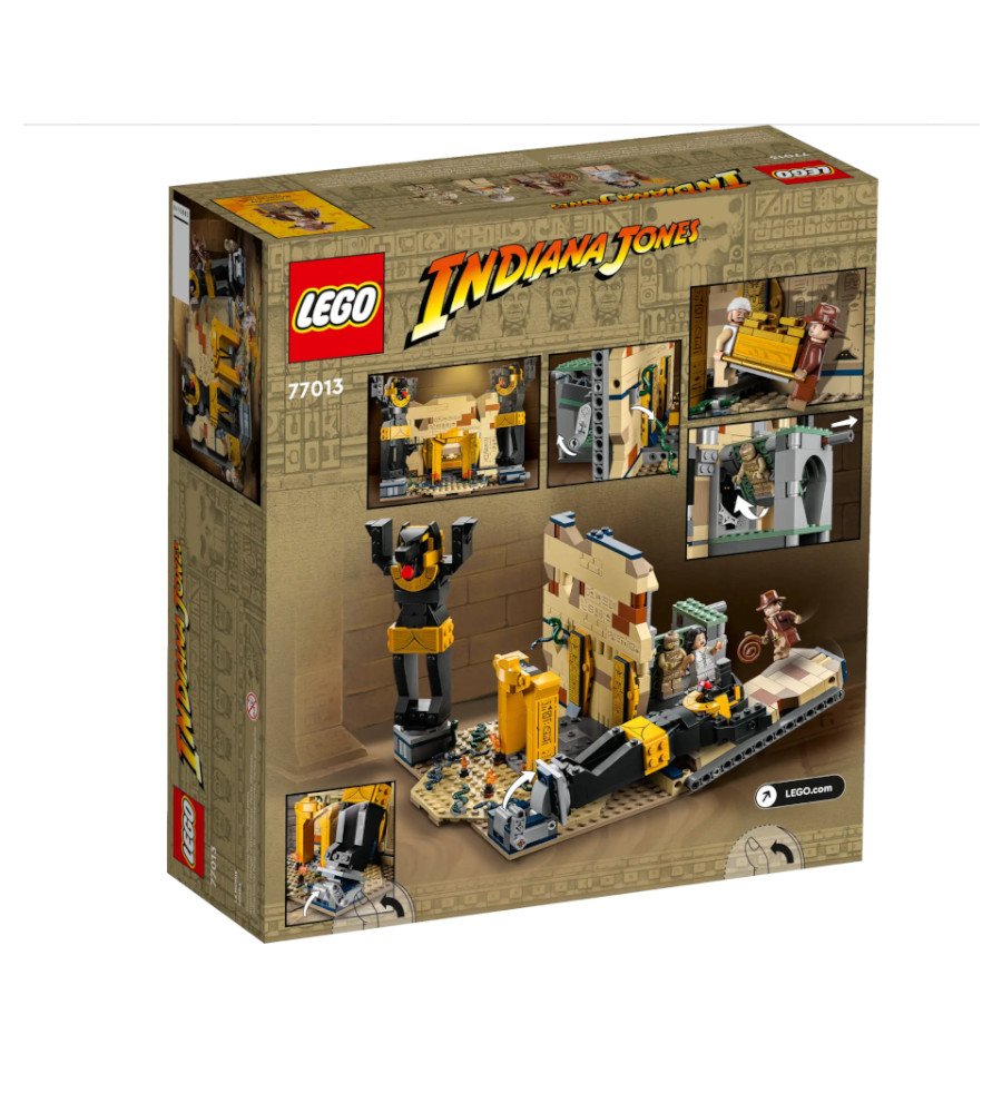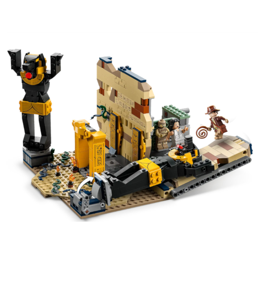 4 minifigure: Indiana Jones con il suo famoso cappello e la frusta, Marion Ravenwood, Sallah e una mummia. Contiene anche numerosi serpenti: a terra e che fanno capolino attraverso un muro